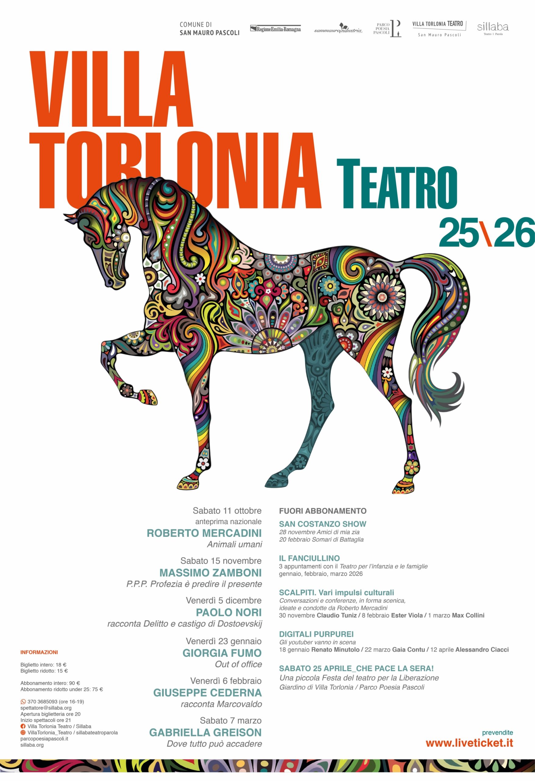La stagione teatrale 25/ 26 e’ curata da Sillaba Coop, con il contributo del Comune di San Mauro Pascoli.